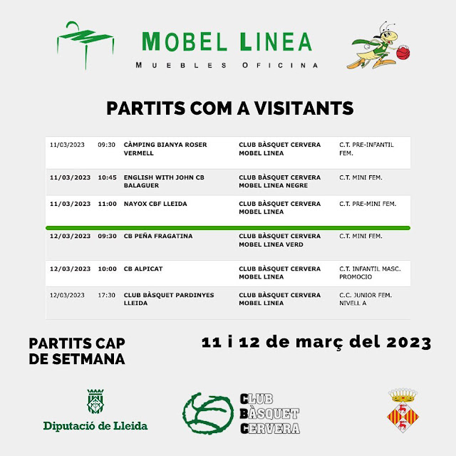 Aquests són els partits d’aquest proper cap de setmana. Alguns són partits clau com ara el del sènior masculí negre que juga a casa, per això, us fem una crida a atansar-vos al pavelló a donar un cop de mà amb el vostre suport. #cbcervera #cerverafort